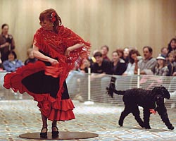 Each one of our dogs has fit the definition of a PWD but some have had emphasis on certain traits. Duffy needs a significant amount of daily exercise to be provided for her or she will find it herself! She also is a thinking dog and likes games, challenges and her energy channeled. Dominique likes to be center stage, but makes it quite clear who her "people" are. One thing is certain - they love their families! They are a great family dog and thrive with being with their "people". When making the decision to own a Portuguese Water Dog, please do your homework. This non-shedding breed isn't for everyone! Early obedience training is mandatory, a commitment to exercising and grooming the dog and a sense of humor is required by those wanting to own the PWD! |
