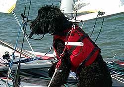 The Portuguese Water Dog is a medium sized, lively robust dog. See the AKC Breed Standard for more details. Known for centuries as a lifesaver, courier, retriever and companion, the Portuguese Water Dog has long been associated with the life of the Portuguese fisherman and with the sea. He is a recent arrival on the pure-bred scene in the United States, only gaining AKC recognition in 1984. This versatile breed is winning the hearts of sailors and land lubbers alike. Read about the PWD History. The Portuguese Water Dog makes a great companion for active people and families. They enjoy performance events such as agility and water work. They are equally content being treasured family dogs. However, they are working dogs! They often "help" with the laundry (stealing socks), making the bed (snoozing on it & pillow stealing) and they will even help with dinner (counter surfing)!